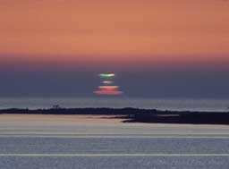 NASA: Many think it is just a myth . Others think it is true but its cause isn't known. Adventurers pride themselves on having seen it. It's a green flash from the Sun . The truth is the green flash does exist and its cause is well understood. [Thanks RobH] Comments