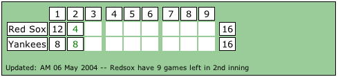 Continueing with my scheme of following the season as if it were a nine inning game. We are now halfway through the second.