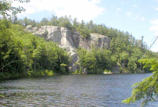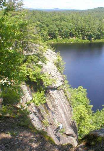 Just a mile or so off of US202 in Barrington, it turns out the SP is a popular rock climbing venue. When we arrived there was a group of four climbers working on the very dramatic-looking rock face on the far side of the pond. (Click any these images to enlarge.)