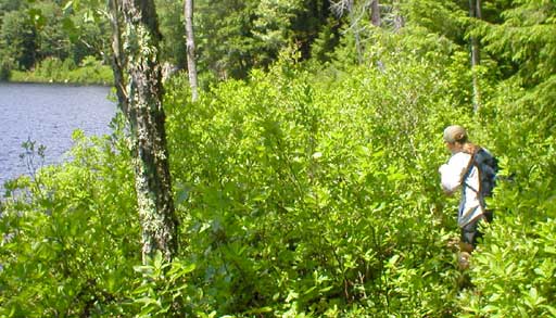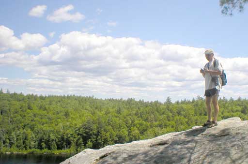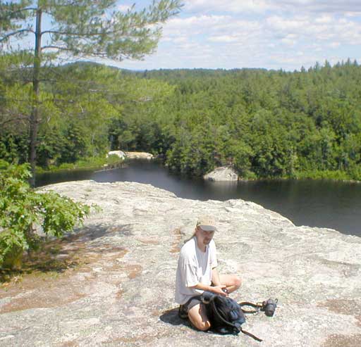 The trail around the shore of the pond is a bit overgrown, but passable. At the far side of the pond we climbed the steep ground around the side of the rock face and reached the top.