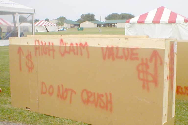 As I mentioned, there's a lot of exhibit setup happening around here. These guys had an interesting way to try and motivate the shippers to be careful.