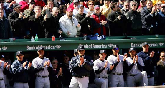 I've told the story about how they were the first to recognize that Cal Ripken had ended his streak, and how they stood at the edge of the dugout in Camden Yard and applauded. Yesterday, they stood in the Fenway dugout and applauded as some of our players received their World Champ rings.