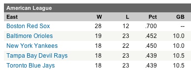 Just for the record. As of today the Yankees are 10 games out of first, and just a half game out of last place.
